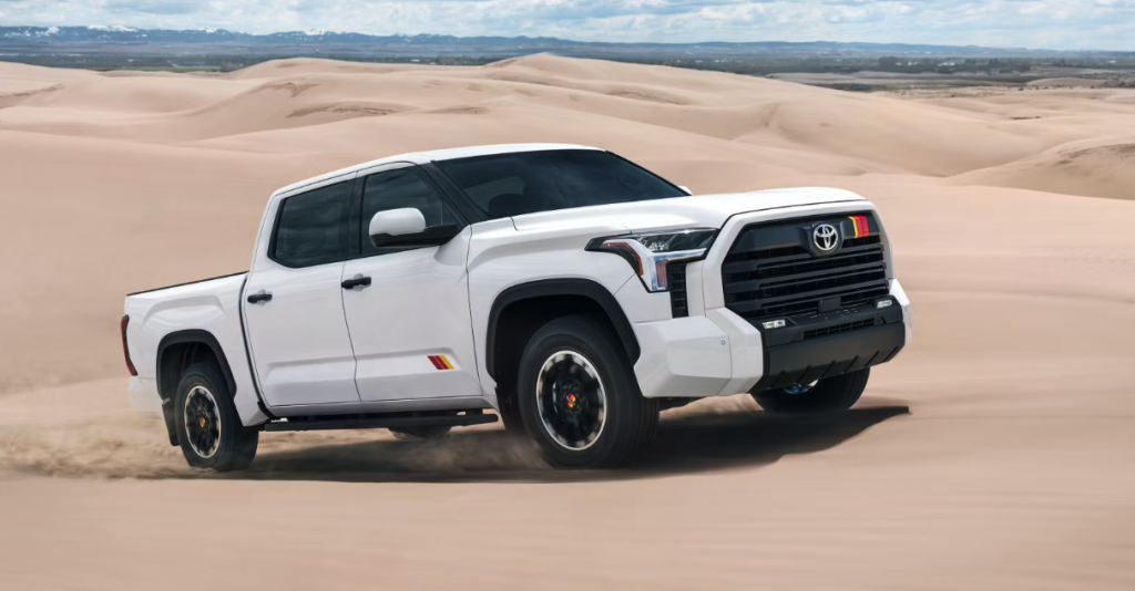 The Tundra is great for off-road adventures. The TRD Pro model has special features for rough terrain. It also comes with Toyota Safety Sense™ 2.5 for safety.