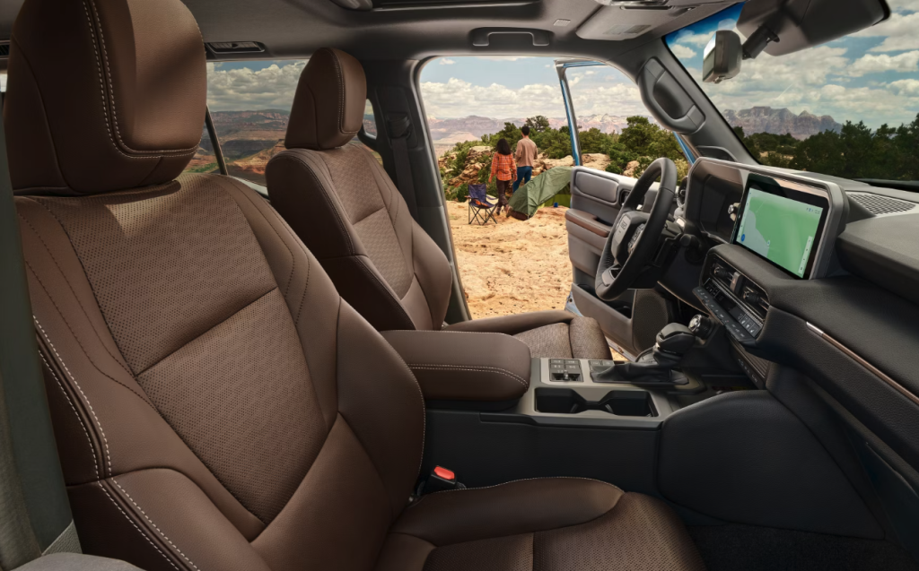 The 2025 Toyota Tundra Hybrid offers premium interior amenities. It has leather-trimmed seats with heating and ventilation. It also has a spacious cabin and cutting-edge infotainment and connectivity features.