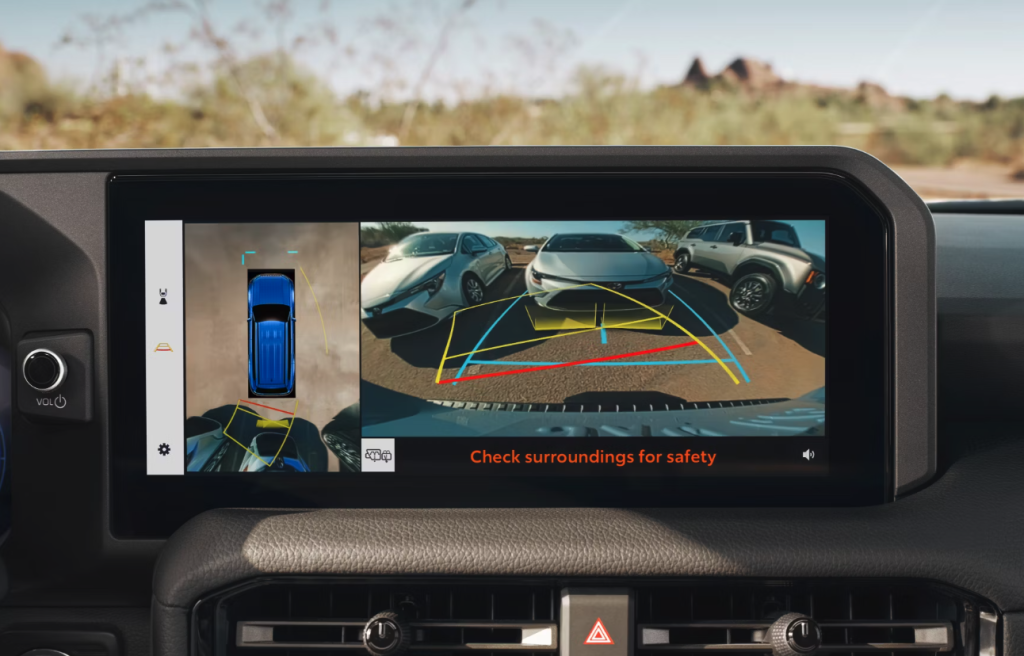 Toyota Tacoma towing specs are impressive, but the tech is what really stands out. The Tacoma’s towing assist features make hitching and maneuvering easy. With a backup camera and guidelines, you’ll connect to your trailer on the first try.