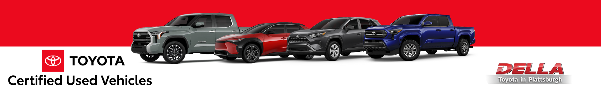 When you choose to buy a CPO Toyota from DELLA Toyota in Plattsburgh, you're not just buying a used car. You're investing in a vehicle that has been handpicked and thoroughly inspected to ensure the highest levels of quality and satisfaction. More than that, you're buying peace of mind. The Toyota Certified seal is a guarantee of reliability and quality, offering you reassurance with every drive. Explore our wide range of CPO Toyotas today and take the first step towards owning a vehicle that combines a pre-owned car's affordability with a Toyota's reliability. Visit DELLA Toyota and test drive one of our many CPO vehicals, and find your dream car today!