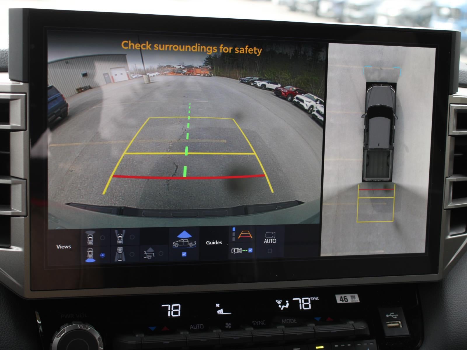 48. The Panoramic View Monitor does not provide a comprehensive view of the area surrounding your vehicle. Look around to confirm clearance. See Owner’s Manual for limitations.